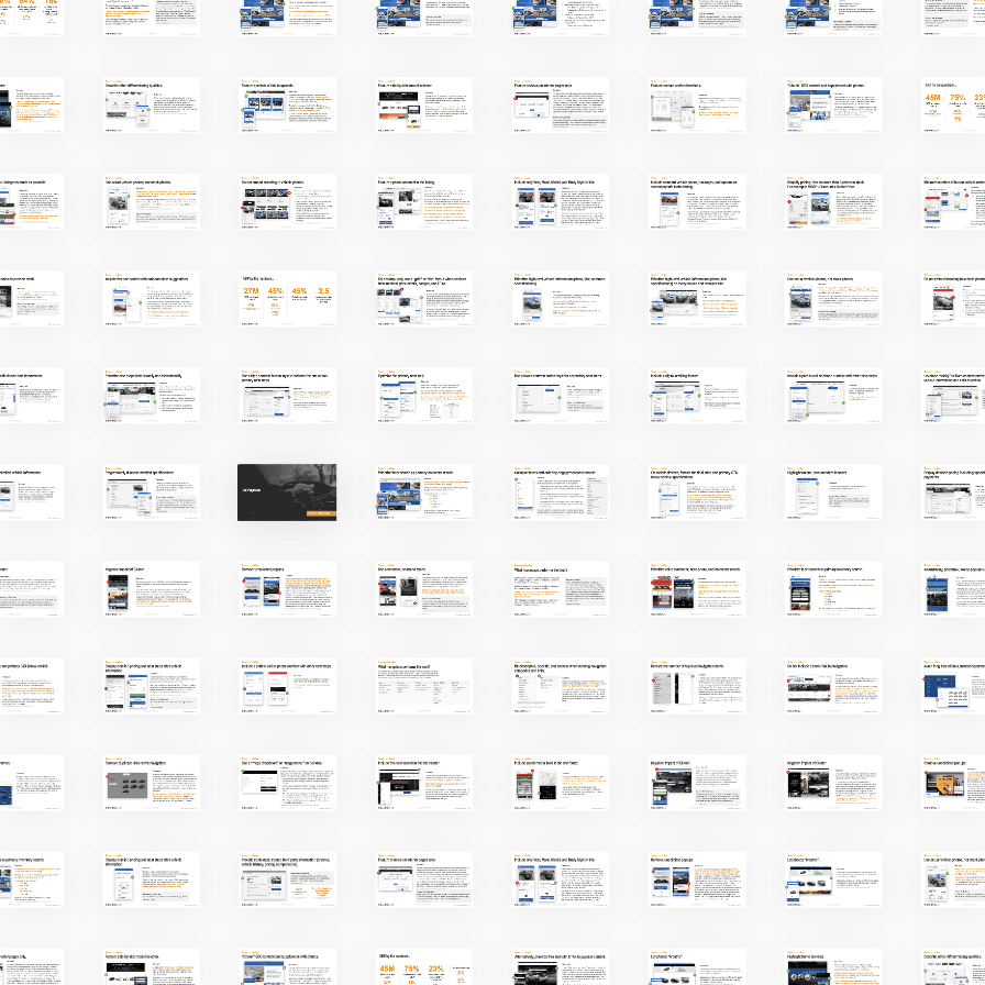 To address this challenge and others, I created a collection of data-backed recommendations to help customers configure their website for optimal visitor experience and conversion. The collection, known as the Dealer.com UX Playbook, has been used by product, UX, and client-facing teams. It has been presented to auto manufacturers including Audi, Ford, Subaru, Toyota, Volvo, as well as individual dealerships and dealer groups.
